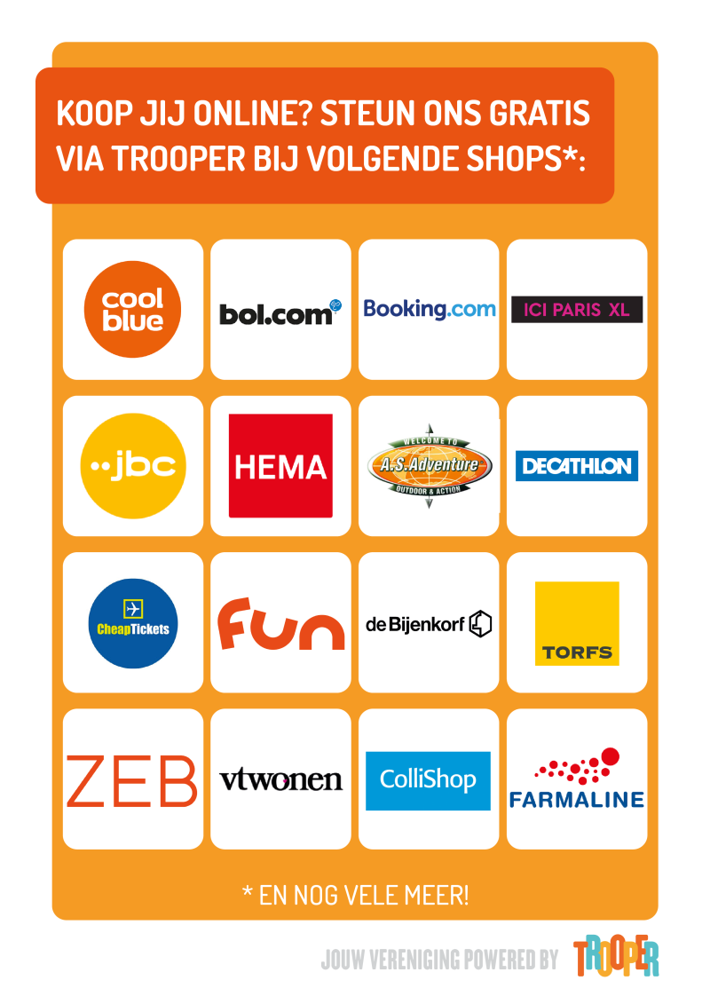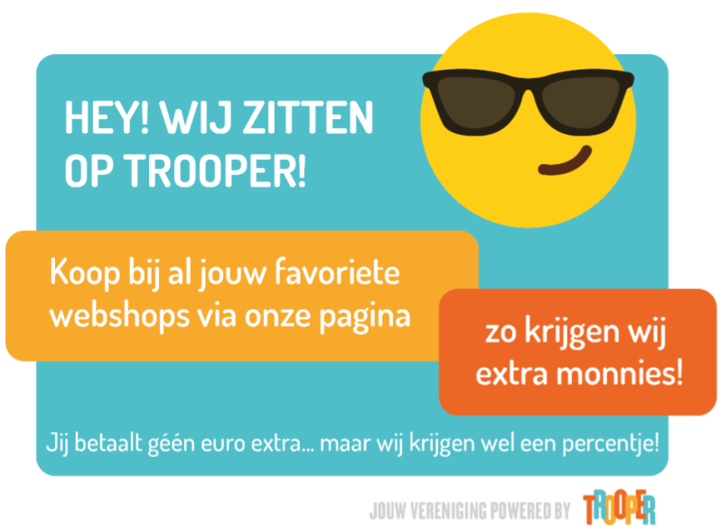 - via Trooper-link (klik op de afbeelding hieronder): bij elke aankoop in één van de 400 webshops, gaat er een centje naar 'vzw Hello TPN' zonder dat je zelf een cent extra betaalt...geweldig toch!